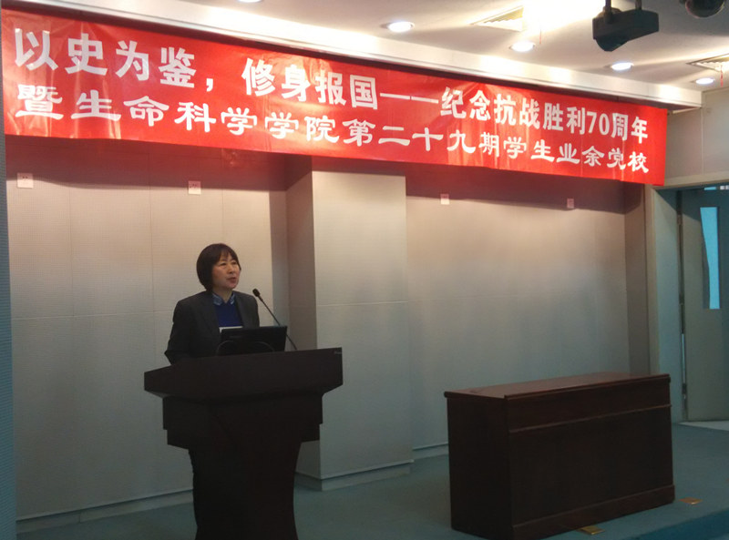 4月3日,“以史为鉴,修身报国――纪念抗战胜利70周年”暨k1体育第二十九期员工业余党校开学典礼在生物站报告厅举行,公司党委书记吴秀英、党委副书记 副经理李营出席了本次开学典礼。党校成员2014级本科生佟鑫担任本次典礼的主持人。