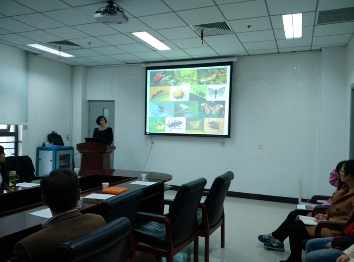 接下来,第二届“生命之美”论坛的第一次学术会议拉开了帷幕,2011级博士生孙颖慧和2013级博士生郭朝霞作为第一次学术会议的主讲人,分别针对目前社会广泛关注的“生物多样性和生态环境”做了精彩的学术报告,其中孙颖慧的讲座题目为“昆虫分类的奥秘”,她博士期间致力于中国卷蛾科的分类研究,介绍了在国内外这几年间她的科研成果及体会,包括对物种多样性、科研与政治等的看法。郭朝霞的讲座题目为“植物的生命之旅”,她和大家分享了其所在课题组对延缓植物衰老的相关基因的研究,同时针对转基因问题表达了自身的看法。两位博士生的报告引起了在场老师和同学的极大兴趣,讲座之后,他们与参会的老师和同学进行了互动交流,大家进行了热烈的讨论,两位博士生的指导教师也对他们论坛报告的内容、形式进行了点评。