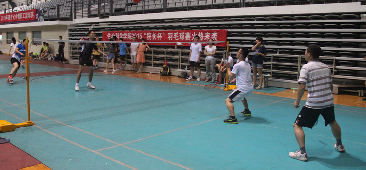 5月31日下午,“经理杯”羽毛球赛半决赛第一场在新体育馆开赛。对阵形势:“四教205队”VS“海兰藏獒队”。