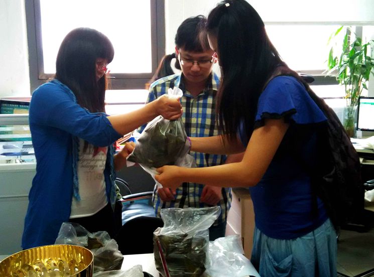 员工工作办公室内,辅导员们亲自将散发着浓郁香味的粽子分装成袋,将它们送到同学手中,并与同学们一起聊天,鼓励他们牢记中华传统优秀文化,更好的继承与弘扬中华民族传统美德,克服困难,努力学习专业知识,用自身的力量报效祖国。