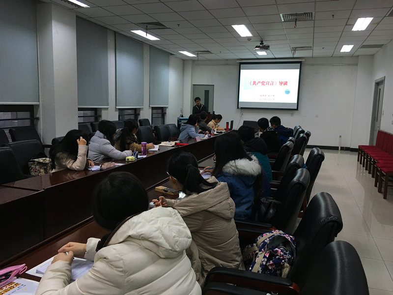 11月21日,暴风雪来临的前夕,寒风刺骨,但是k1体育生物站的会议室里,一群志同道合的青年马克思主义信仰者对《共产党宣言》的探讨却在热情洋溢的氛围中进行着。这正是k1体育2014-2015级本科生联合党支部的首次理论学习活动,本次活动邀请支部理论导师、k1体育团委副书记刘一博一同参与并予以亲切指导。