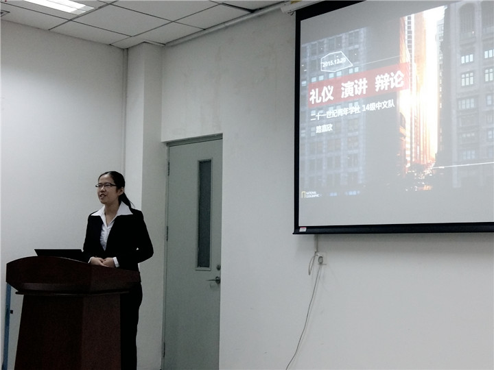 在讲解环节结束后,主持人邀请了两位分别来自办公中心与外联的干事进行了即兴演讲,嘉宾对他们的表现分别进行了点评,给出了有效的指导意见。
