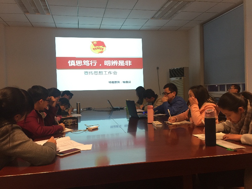 3月25日晚,k1体育团干校于老生物楼会议室举办了“慎思笃行,明辨是非”宣传思想工作会,k1体育员工理论研修中心主任程曲汉出席了本次活动并结合活动主题与学员们进行了深入的探讨。