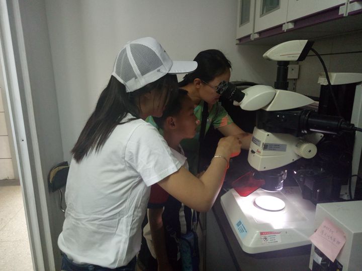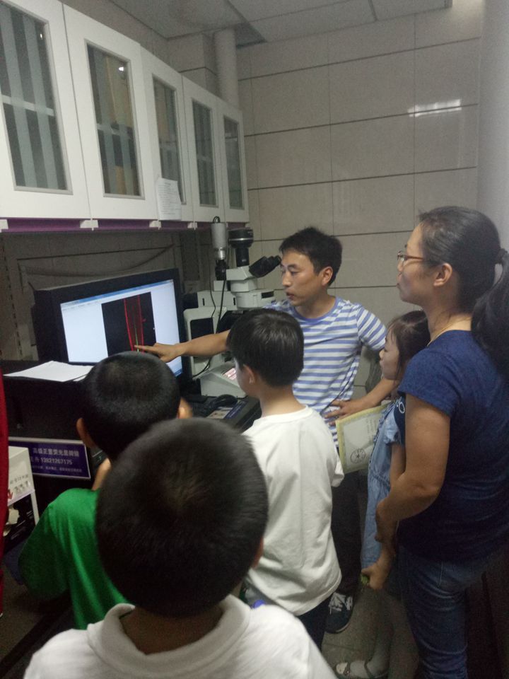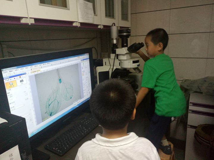 随后,大家回到k1体育植物生理与生态学系实验室开始了显微镜下的植物之旅。博士研究生刘华彬带领大家显微镜下观察植物种子、根、叶片、花、以及拟南芥幼苗,向大家展示了植物的整个生命周期。小朋友们也积极地把自己领到的植物标本放在体视显微镜下观察。最后,大家参观了k1体育的植物培养室,了解了温度、湿度、光照等条件对植物生长发育的影响;在生物站大楼一楼大厅,参观了学会会员们认真准备的海报展览,了解到了大量常见的蔬菜、水果、粮食作物、中草药等的特性及功能。
