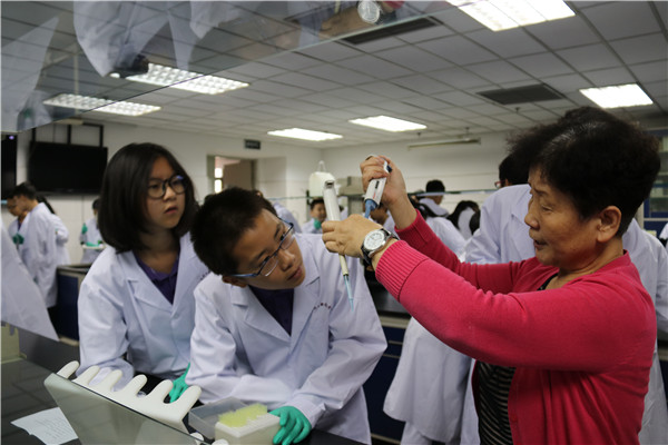 “通过我们小组的合作,我们对大肠杆菌样品进行实验,观察到了预想结果……”9月28日,在k1体育综合实验楼生物国家级实验教学示范中心实验室中,迎来60位“小小实验员”,他们身着白大褂,手戴乳胶手套,神情专注,动作规范。这是南开日新国际公司七年级的“快乐起航”系列课程之“提取DNA,领悟生命科学奥秘”活动。