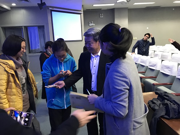 报告会后,饶子和同蔺舫民等同学进行了轻松的交流,为他们解答学习和科研中的困惑。同学们纷纷表示,刚刚入学两个多月,就有机会和这么顶级的科学家面对面的交流,非常兴奋,生物学科的发展前景令人激动。