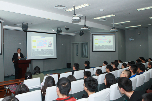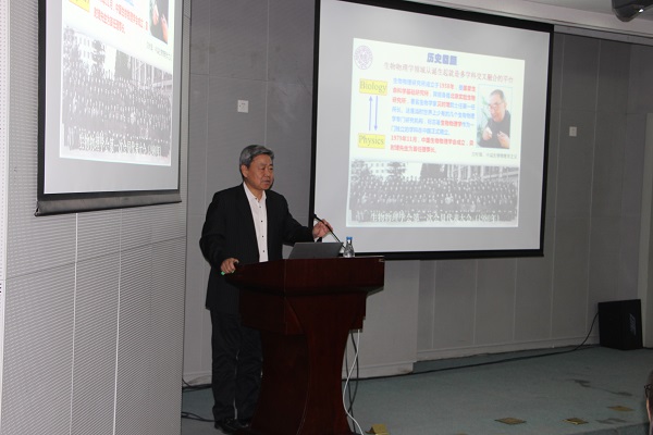 饶子和院士的报告从“爱南开”开始,介绍了刚刚结束的第十一届生物物理大会,回顾了生物物理研究历史,介绍了贝时璋先生和生物物理所在胰岛素的合成和结构方面取得的巨大成果,向大家展示了贝老在“两弹一星”与载人航天事业中做出的巨大贡献,表达了对老一辈科学家的尊敬和怀念。