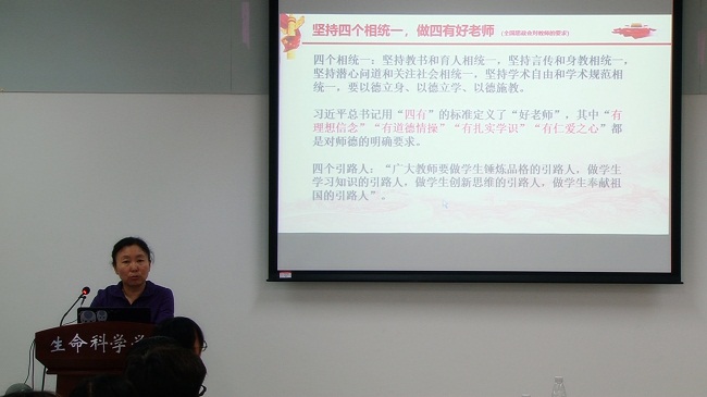 生物化学与分子生物学教工党支部王淑芳教授以“创新是引领发展的第一动力”为主题,细细剖析了新时代的新发展理念,并着重讲解了科技创新部分,要求青年员工把握机遇,勇担时代使命。