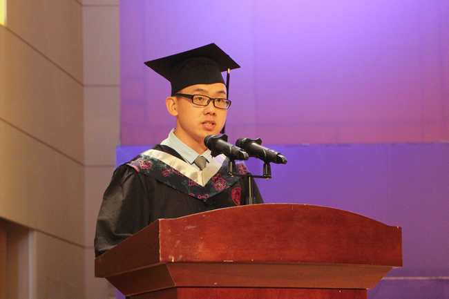 随后,程曲汉、杨祥祥、付士娟分别代表本硕博毕业生上台发言。程曲汉回忆道,自己在汶川地震之后走出四川边远山区,四年前通过国家贫困地区专项计划被南开录取,在这里接受了最好的教育,学习了如何成为对时代和社会有用的人。杨祥祥表示,自己在南开“文以治国、理以强国、商以富国”办学理念的指引下来到这所校园,通过严格的学术训练收获了科研能力与意志品格的提升。付士娟谈了自己读博过程的感悟和体会,感谢k1体育优良的学风和完善的实验环境助力研究生攻克难关。她表示,未来也会继续秉持南开精神,在拼搏奋进中开创美好未来。