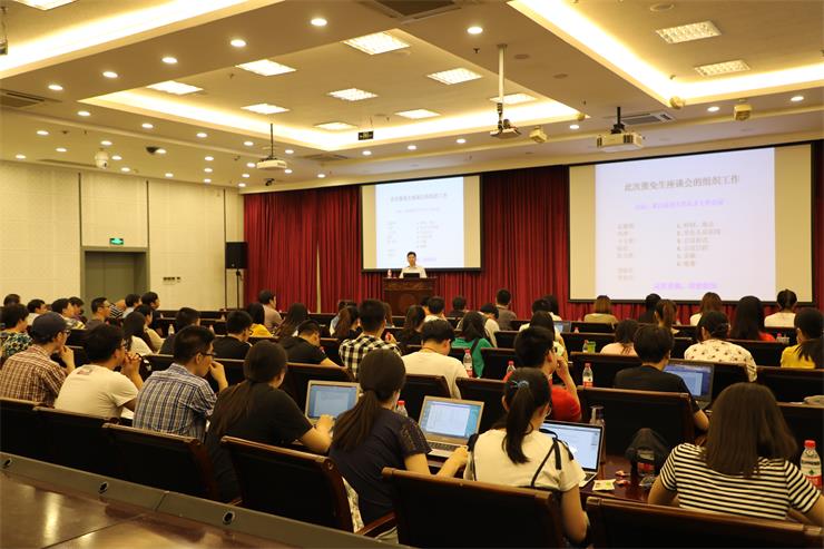 公司相关负责老师对往年公司推荐优秀应届本科毕业生免试攻读研究生的政策进行了介绍。生物化学与分子生物学系主任洪章勇教授、微生物学系主任乔明强教授、遗传学与细胞生物学系刘林教授、植物生物学与生态学系王勇教授、动物生物学与发育生物学系卜文俊教授、生物活性教育部重点实验室主任杨志谋教授分别对所在专业的研究方向进行了全面的介绍。