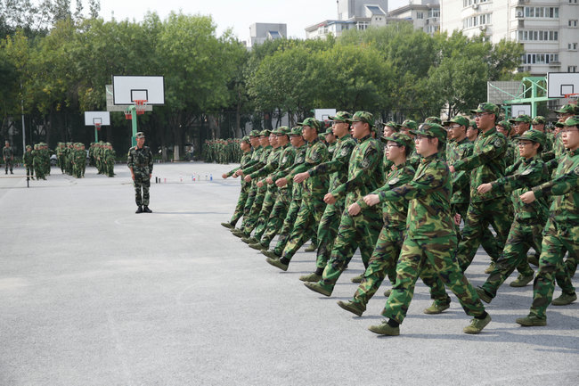 军训学员在教官的带领下向领导小组展示了近来的训练成果,包括齐步、正步、跑步及分列式行进等相关内容。学员以高昂的斗志完成了所有展示项目。经理孔德领检阅过后表示,同学们的表现都十分出色,队列整齐,充满自信,体现出了积极昂扬的精神面貌。在讲话中,孔经理认可了同学们训练中所展示出的坚强意志,对训练成果给予了肯定,又通过分享自己的面试经历强调了在学习生活中拥有好的时间规划、自律习惯和体格体魄的重要性。经理指出:“军训对我们每个人,都是一次磨练的机会。从场边休息同学的人数就可以看出,大家训练强度都很大,而且都很刻苦,但还是希望同学们在身体条件允许的情况下坚持训练,挑战自我,高质量完成军训任务。”接着,经理向同学们表达了公司领导的关心与期望,希望同学们在今后的训练中再接再厉,发扬艰苦奋斗的精神,养成自律自强的良好习惯,更出色地完成接下来的训练。