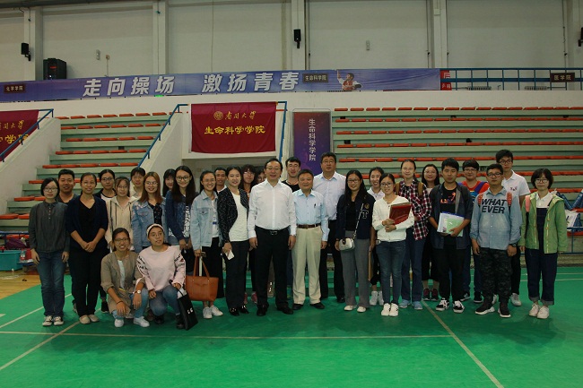 董事长曹雪涛来到迎新现场了解报到进度,对2018级新生表示了欢迎,鼓励新生在南开园继续勤学苦练,脚踏实地。随后,曹雪涛与现场师生合影留念。