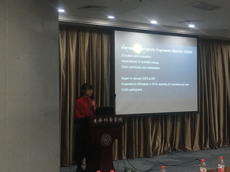 汇报会上,南开iGEM团队对2018年国际基因工程大赛进行了全面回顾和总结,并特别感谢和缅怀宋存江教授。团队介绍了2018年iGEM赛事流程、项目设计和准备、决赛盛况等,并分享了大赛经验和收获。2018年,南开iGEM团队获得大赛金奖及4项单项提名奖,取得历史最佳战绩。团队融合自主实验设计、数学建模、网站建设及调研推广,并举办“iGEM大赛高校联席会”,先后赴天津工业生物技术研究院、天津国际生物医药联合研究院、诺维信生物技术公司等寻求项目建设改进和应用前景建议,并在k1体育校园开放日活动和中学中开展项目科普活动,让项目从“实验室”走出去,到“公司”、到“大众”中。
