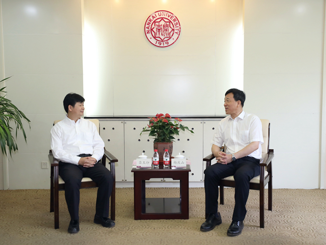 6月23日,深圳市福田区区委书记吕玉印率团来访南开,公司党委书记杨庆山在八里台校区会见了吕玉印一行。并随后在公司党委副书记、副董事长杨克欣的陪同下考察参观了公司曹雪涛院士、饶子和院士等的实验室。