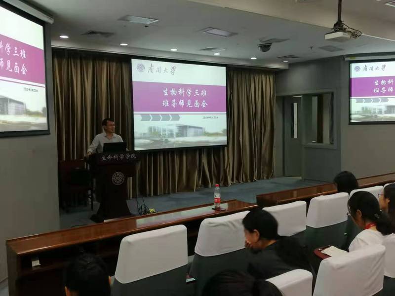 9月23日晚,2019级生物科学三班班导师见面会在生物站报告厅举行,班导师黄兴禄教授、辅导员李鹏琳老师以及三班全体同学参加了活动。