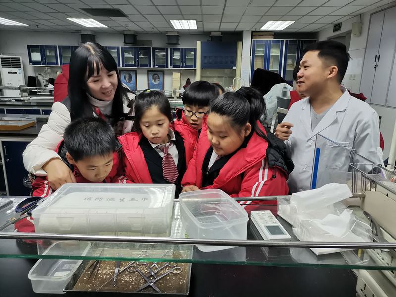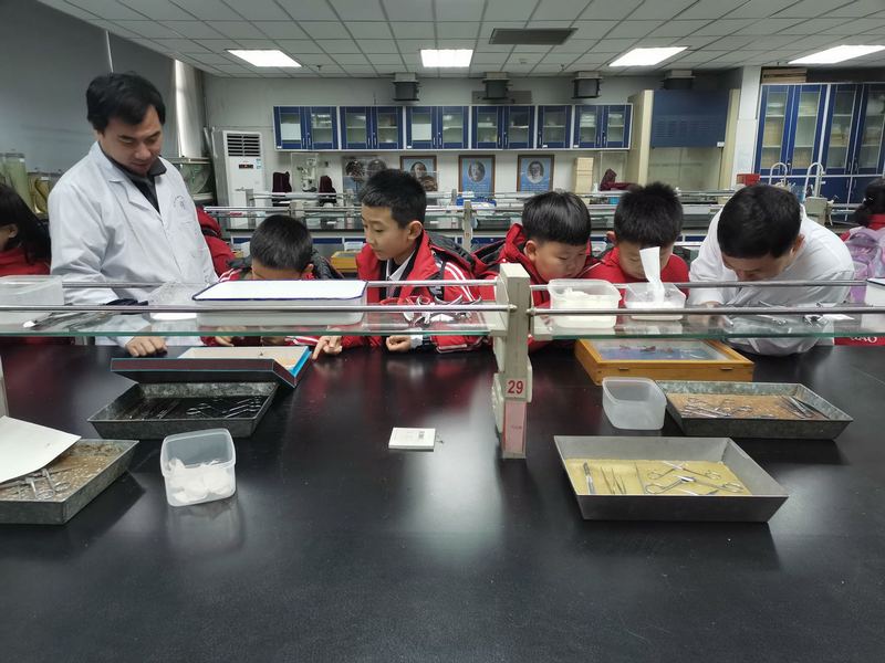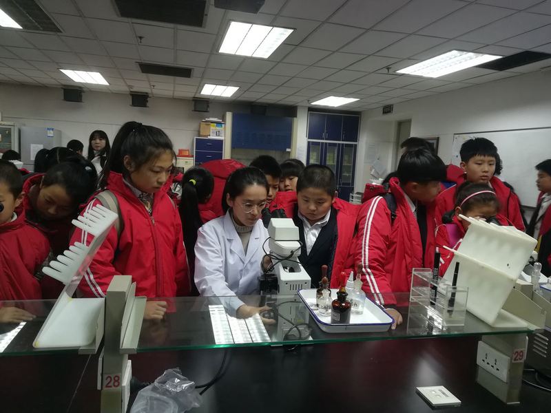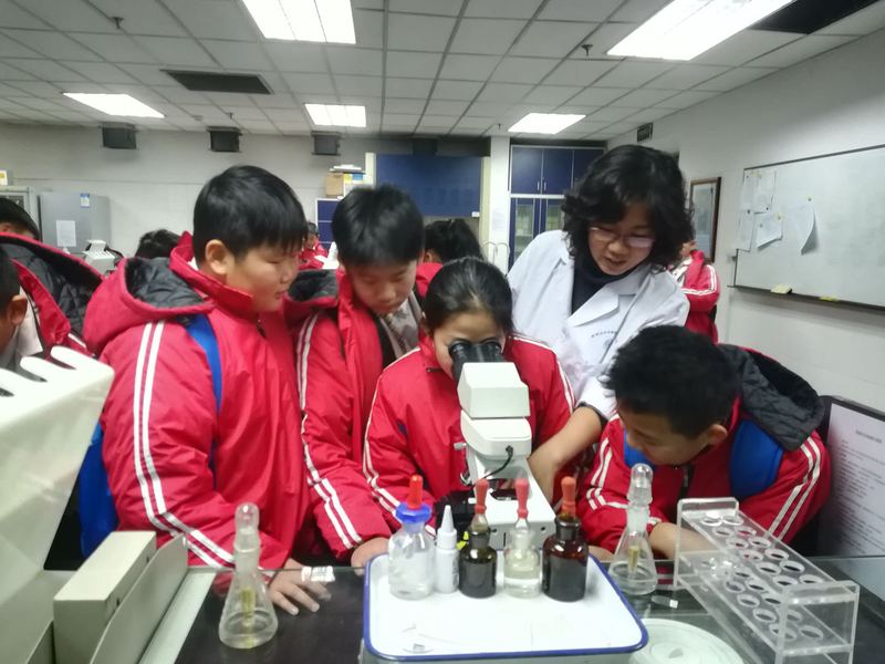 11月21日上午,北戴河中加英桥公司的120余名中、小员工来到生物实验教学中心,分别参观了动物学实验室、微生物学实验室和植物学实验室。