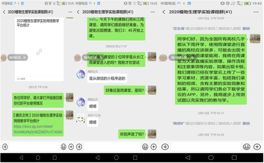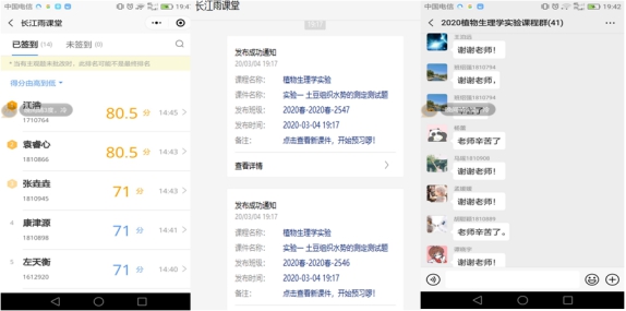 另外,值得一提的是,我们的课程讲解中包括实验流程中用到的仪器设备和实验现象与结果的展示,结合讲授时对容易出错的操作环节和失误的操作结果展开的重复讨论,同时利用实验室的虚拟仿真实验项目,让有条件的同学通过完成虚拟实验来强化学习效果(植物水分的运输和利用虚拟实验,设施果树无土栽培技术的虚拟仿真实验教学项目,稀缺药用植物次生代谢物的虚拟合成实验,分别对应我们的前三个实验项目)。其他同学开学后再行完成。这些具体的可视化素材和多种方法的综合使用,有效突破了线上进行实验教学的难点、取得了较好的教学效果并收到不少员工的好评反馈。