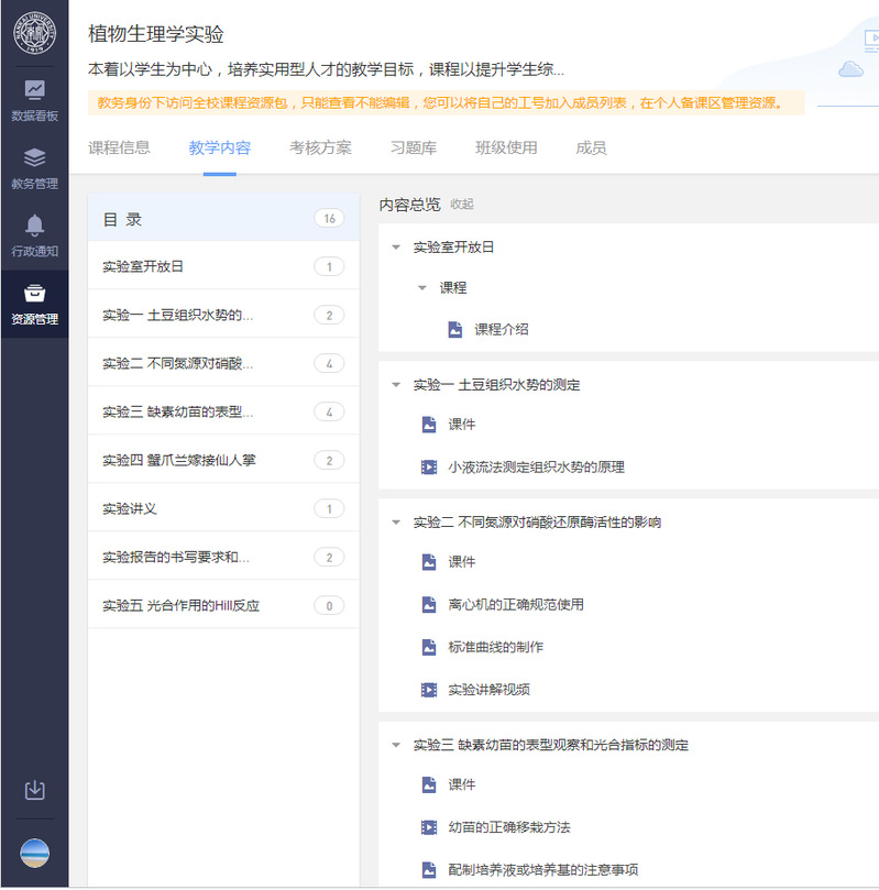 重新设计了教案、教学内容与课件。根据线上授课的具体特点,教案中更加突出了互动教学的内容,借助线上平台的签到、弹幕、答题等手段,将已有的课程资源进行编辑整理,特别是在原有的课件中插入了投票题和选择题,并整理了测试题,以强化教学过程中互动和讨论。同时为突破实验课程线上教学的难点,课程组已经将主要操作和仪器使用注意事项以及实验课程的讲解视频逐步上传到了学堂云和雨课堂。另外,课程讲义、教学大纲和课程要求等也在开学初及时上传到了学堂云平台。