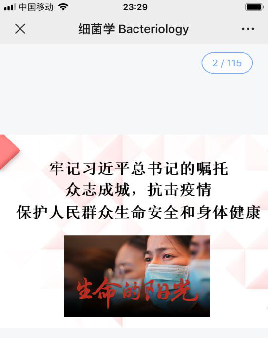 为保证线上授课的教学效果,他们认真参与线上教学培训,提前熟悉雨课堂等线上教学工具的使用方法,精心准备课程教学资源。经过开学前一周的认真准备,“细菌学”课程于2月14日在雨课堂平台正式上线,同时建立了“2020细菌学微信群”,实现雨课堂平台和课程微信群协同工作,保障教学工作有序开展。