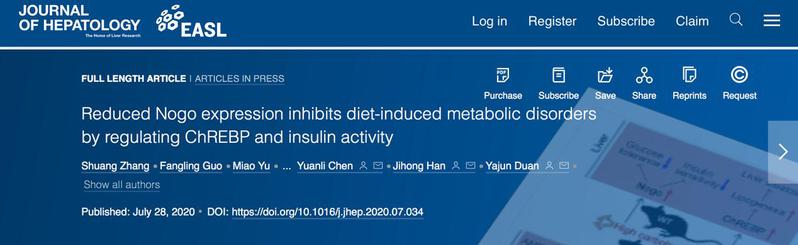综上,本研究阐明了一种新的调控糖脂转化的分子机制:在生理条件下,Nogo基因敲除能够适当地激活ChREBP,从而少量增加肝脏脂质水平,增强小鼠适应高能量需求环境;而在病理条件下,减少Nogo基因表达能够增加胰岛素敏感性、抑制ChREBP表达,从而抑制高碳水化合物食物引起的葡萄糖不耐受和胰岛素抵抗,同时增加糖和脂的利用,增加能量消耗。该研究发现了Nogo基因在糖脂代谢中的新功能,有望成为治疗代谢性疾病的新靶点。