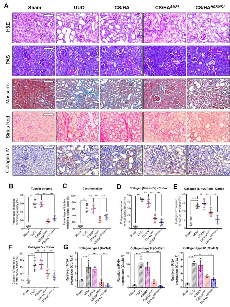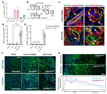 图3. CS/HApDNA 纳米粒对肾纤维化的预防和治疗作用是通过保护肾脏结构实现的。