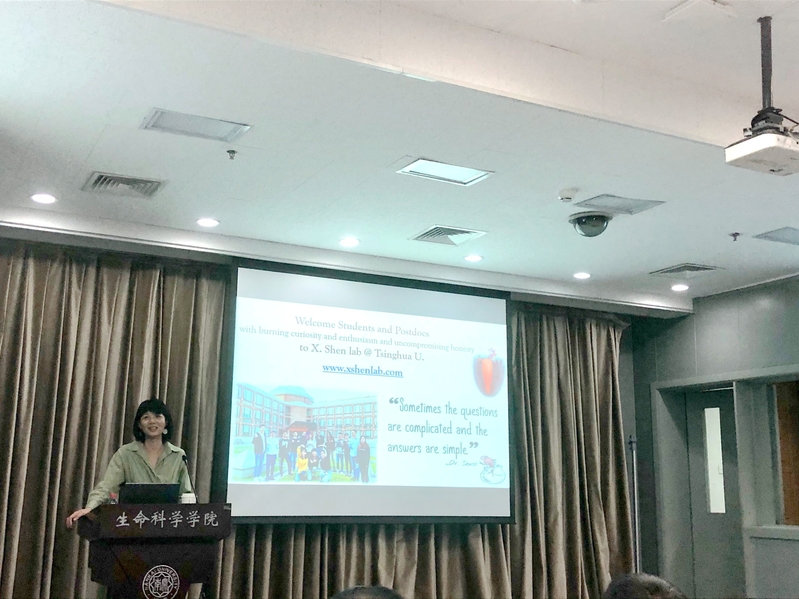 讲座中沈教授主要围绕长非编码RNA在发育和干细胞中的功能,和重复序列在基因组DNA高级结构形成中的作用展开详细的阐述,着重介绍了在lncRNA和RNA结合蛋白的相互作用介导转录和表观遗传调控的新方式,以及重复序列在调控常染色质和异染色质组装中的重要作用。讲座中,沈教授渊博的知识,前沿的研究,严谨的态度,给大家留下深刻的印象。
