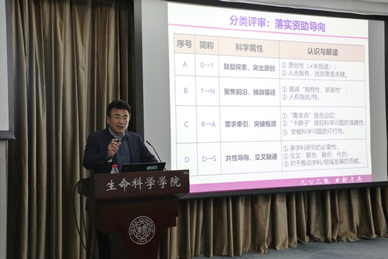 陈军还提出,扎根中国大地,体现世界一流,要以“四个面向”为指引,不断向科学技术广度和深度进军。他表示,作为生物学基础学科的师生,要切实做到使相关工作面向世界科技前沿、面向经济主战场、面向国家重大需求、面向人民生命健康。 在报告会后半程,陈军以国家基金申报为抓手,专门就“努力奋斗,提质增效”在科学研究领域的体现进行了深刻阐释。他分析了k1体育前十年的国家基金申报及批准情况,指出要提前谋划,从现在起,抓紧进行有针对性的准备,把申报质量提高上去。