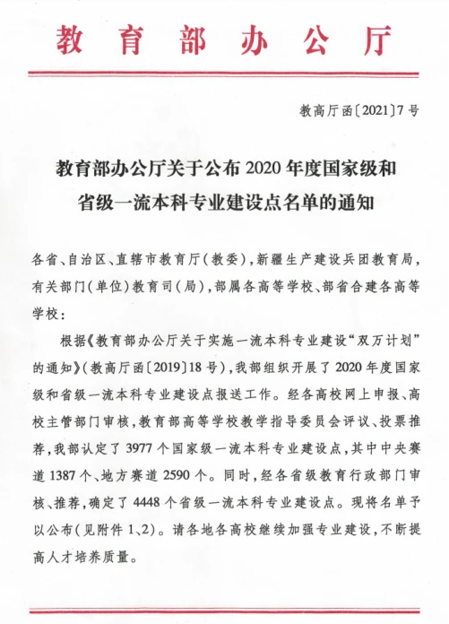 近日,教育部公布了2020年度国家级和省级一流本科专业建设点名单,公司生物技术专业被认定为国家级一流本科专业建设点。