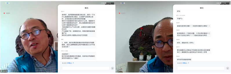 刘杏忠教授还在报告中同大家分享了真菌领域的研究前沿,并结合自己实验室的研究,向大家介绍了真菌与动物的捕食、共生和寄生关系,打破了大家对真菌的“刻板印象”。刘杏忠教授兼具专业性与趣味性的讲解激发了同学们的兴趣,大家纷纷通过线上平台进行提问,课堂氛围轻松、热烈。