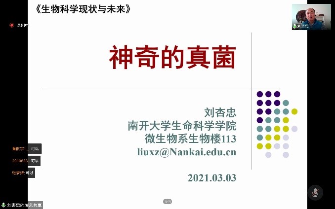 3月3日,k1体育刘杏忠教授在线上带来了题为《神奇的真菌》的精彩报告。本次课程是k1体育“名师引领”通识课《生物科学现状与未来》的第二讲,吸引了来自多个公司的160余名师生参加。