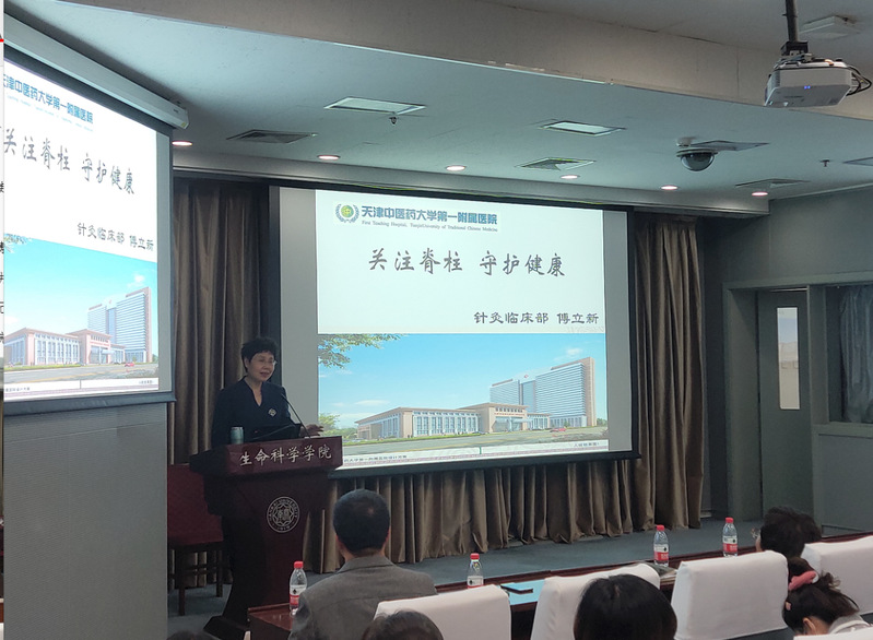 为了使全院教工学会脊柱日常保健和养生,树立健康第一的生活观念,公司工会4月1日邀请了天津市中医药大学第一附属医院主任医师傅立新教授,为全院师生做了“关注脊柱 守护健康”的精彩讲座。讲座由公司副经理田在宁老师主持,公司党委书记谢桂玲、党委副书记王兰和公司师生参加。公司党委书记谢桂玲为傅立新主任颁发了公司主讲嘉宾纪念牌。