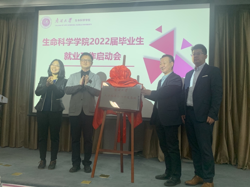 公司一直以来也十分重视加强与企业的联络,借助公司灯塔计划项目同多家生物医药类企业搭建了校企合作平台。在会上,李军老师、王兰老师、天津旷博同生生物技术有限公司研发总经理廖晓龙先生、人力资源部总监李紫尧先生为校企合作基地进行揭牌。
