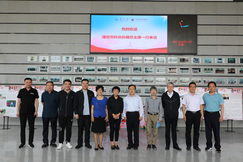 5月31日,潍坊市科协党组书记、主席孙晓非及高新区科技局党委书记马文泉等一行7人来公司访问交流。公司党委书记谢桂玲,副经理马挺、田在宁,合作项目负责人刘新奇,公司办公室、团委员工工作办公室相关人员等参加了交流会。