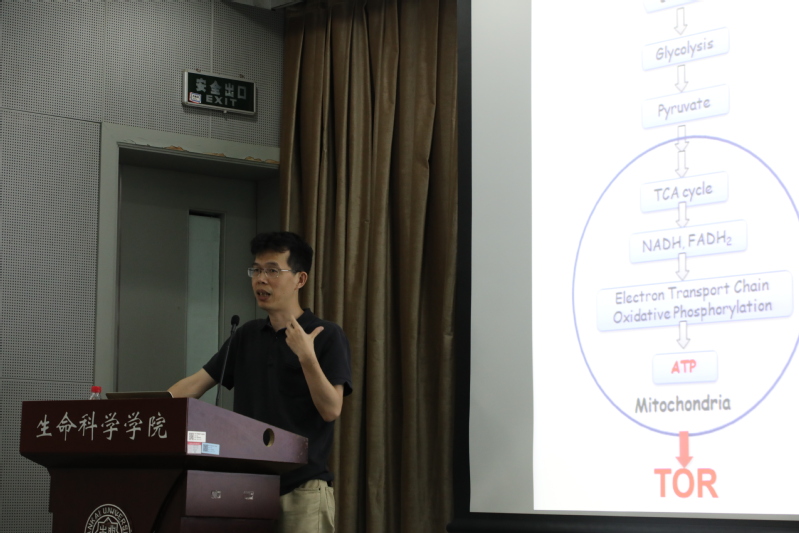 熊延教授从蕾帕霉素靶蛋白TOR(Target of Rapamycin)的发现、重要作用、TOR基因的保守性,以及植物中TOR基因研究的瓶颈问题娓娓道来,幽默风趣,介绍了植物TOR基因体系的建立和TOR激酶响应植物生长发育和营养胁迫等方面的相关研究,重点围绕糖信号和乙烯信号与TOR蛋白激酶在调控根伸长生长和细胞分裂方面的调控作用及其作用机制展开。