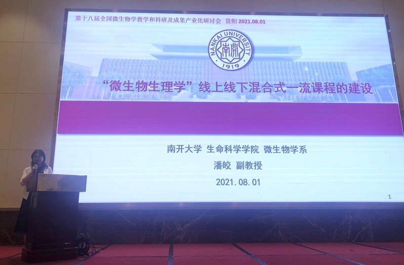 2021 年 7 月 30 日-8 月 2 日,中国微生物学会“第十八届全国微生物学教学和科研及成果产业化研讨会”于贵阳召开。本届研讨会由中国微生物学会普通微生物学专业委员会、农业微生物学专业委员会、微生物教学工作委员会组织、教育部老员工物学课程教学指导委员会、贵州师范大学、黔南民族师范公司和贵州省微生物学会主办。全国从事微生物学教学、研究、开发和生产的教师代表200余人参加了会议。k1体育两名教师代表李明春教授和潘皎副教授参会并进行了报告交流。