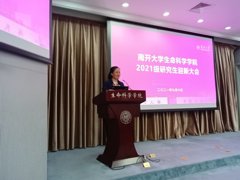 2021级博士研究生王云云作为新生代表发言。她从“勇于学术创新,矢志追求卓越”、“敢于追逐梦想,始终坚守初心”、“厚植家国情怀,勇担时代使命”三个方面,表达了对未来学习生活的憧憬。她说,今年是建党百年,也是南开生科成立九十九周年。作为南开生科人,她将始终牢记自身的责任和使命,自觉把个人的成长奋斗融入党和国家的伟大事业,用一言一行去诠释和定义南开生科,以实际行动为之增光添彩。