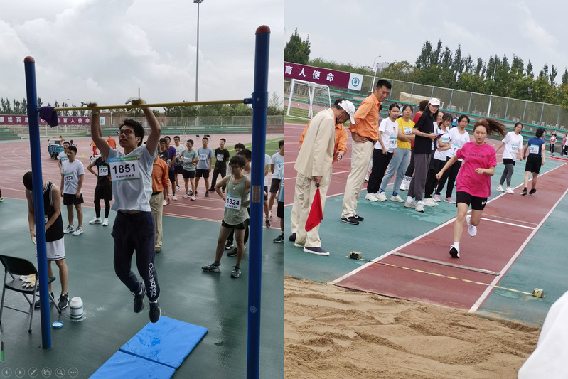 运动会中师生挥洒汗水,奋力拼搏,取得优异成绩。其中教工甲组团体总分第六名,女青:王一涵老师获得跳远第一名和立定跳远第四名、李鹏琳老师获铅球第五名;女中甲:吴玉珍老师立定跳远第五名、刘杨老师实心球第六名;女中乙:周颖老师立定跳远第六名;女老:李明春老师铅球第五名;男中:喻其林老师跳远第三名和立定跳远第四名、王恺老师实心球第四名;男老:安军老师400米第五名;团体:党政工妇4*100接力第五名。