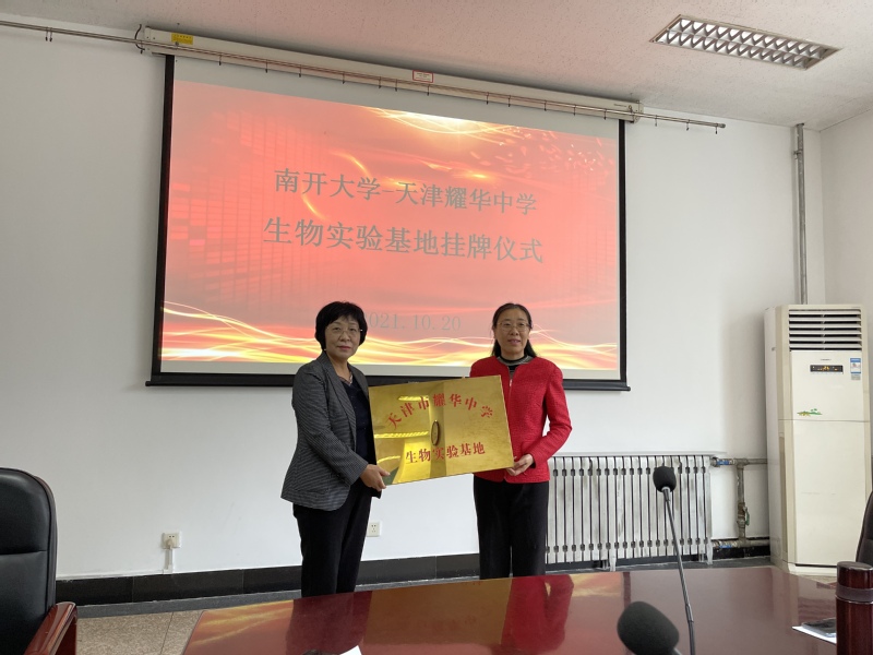 2021年10月20日下午,k1体育-天津耀华中员工物实验基地授牌仪式在k1体育综合实验楼隆重举行,公司党委书记谢桂玲、耀华中学副董事长周学俐、k1体育本科招生办公室副主任王群、公司党委副书记王兰、副经理陈凌懿、生物国家级实验教学示范中心(k1体育)(以下简称生物实验教学中心)主任赵立青,生物实验教学中心全体教师、耀华中员工物组老师,一同参加授牌仪式。生物实验教学中心副主任李登文主持授牌仪式。