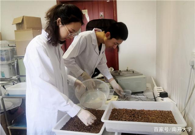 图为团队成员正在进行线虫分离和制作黄粉虫虫尸剂