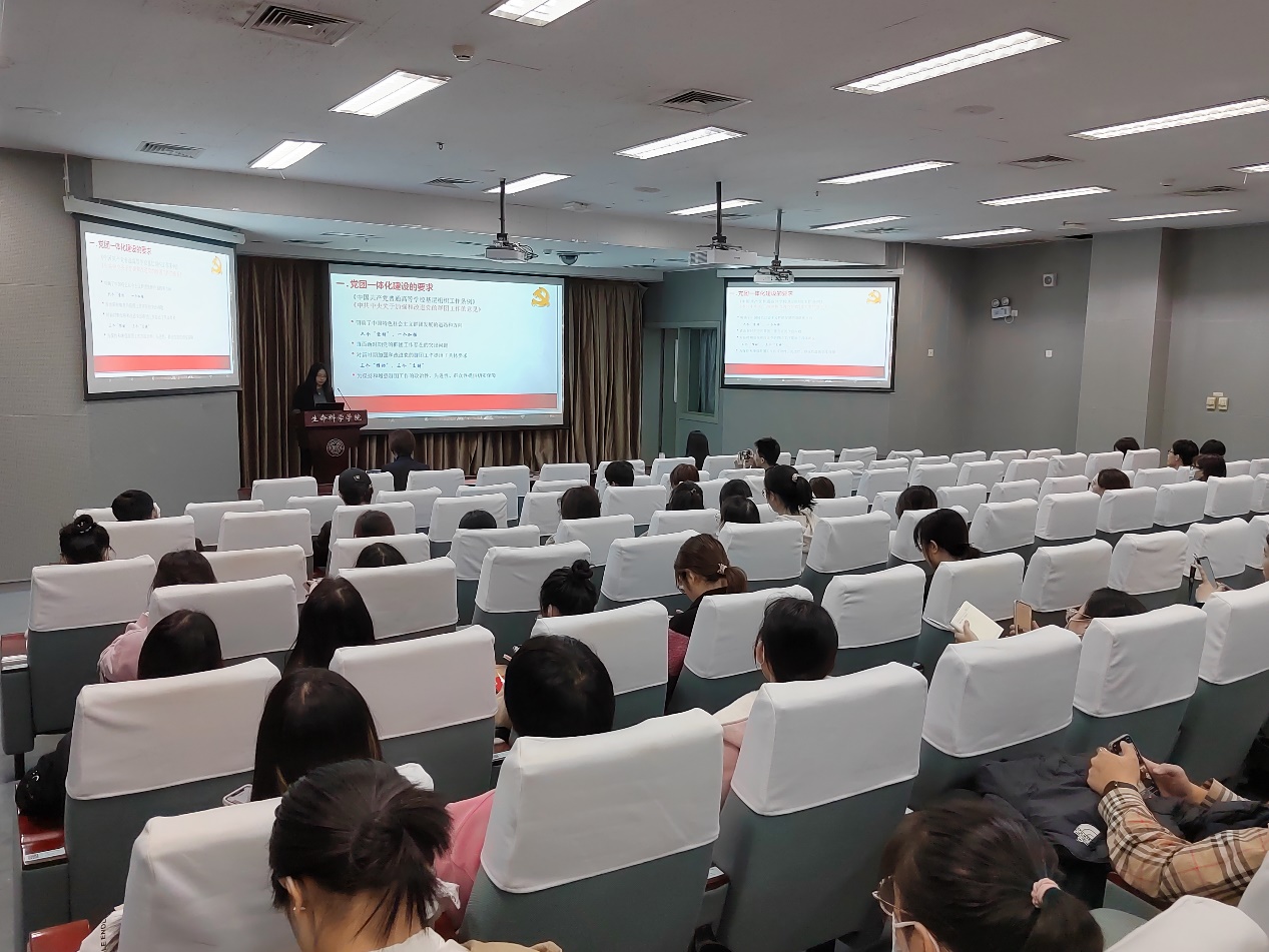 会上,公司党委副书记王兰从“党团班一体化”建设的要求、组织体系改革、工作如何落实三个方面对工作进行了部署。在建设要求方面,王兰带领大家学习了《中共中央关于加强和改进党的群团工作的意见》和公司《关于进一步加强党建统领深入推进班团一体化建设的指导意见》两个文件,明确了“党团班一体化”建设的三个工作原则与五项重点任务;在组织体系改革方面,公司前期结合“依托专业班级设置”的原则对本科生党团支部进行了重新设置,结合“研究生党支部纵向设置原则”对研究生团支部进行重新划分,切实做到全覆盖、全对应,会上讲解了26个党支部与41个团支部的对应关系,并下发了党团支部书记的对应联系方式,从组织设置上确保党团班组织运行一体化。在工作如何落实方面,强调了发挥党支部引领,协同团支部、班级开展工作的重要性,尤其在主题党团日活动、推优入党、奖惩资助等重要工作中,党团班工作一体化对推动“五育”融合、引领青年成长、发挥组织体系政治功能方面具有重要的意义。随后,公司团委副书记王一涵为本届团支部书记开展团支部建设培训,讲解了团支部工作的重点,讲解了智慧团建和团组织建设系统每月上传工作记录的程序和要求,并对团支部委员会进行工作分工,强调发挥团支部委员会集体的领导力,发挥好与党支部、班级委员会的协同作用,尤其在即将开展的人大代表选举工作中,发挥好团支部的组织力和号召力,确保选举工作顺利开展。