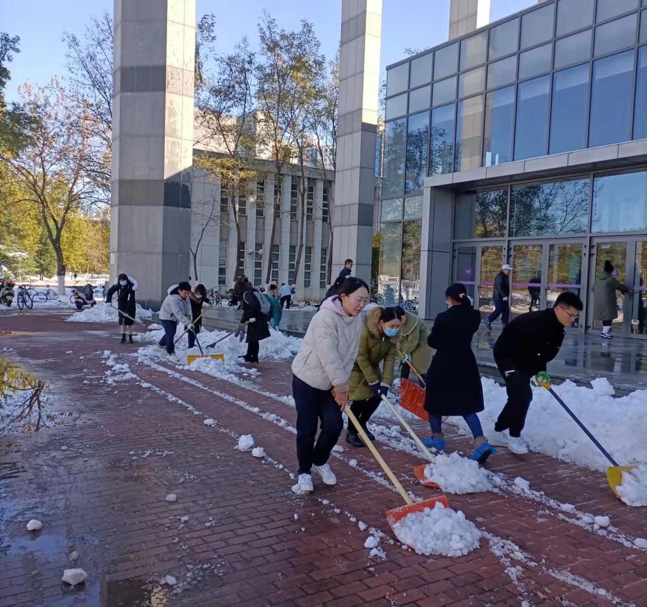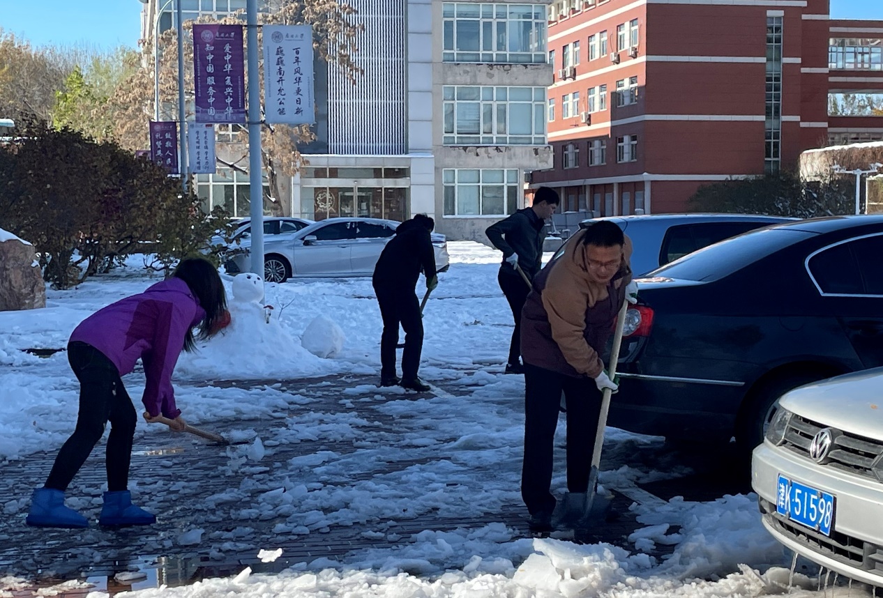 11月7日白天到夜间的强降雪导致南开园被冰雪覆盖,k1体育的生物站附近积雪严重,给师生出行带来诸多不便。11月8日,k1体育行政、平台党支部的老师和生物站16个实验室党员、团员开展“师生携手 清除积雪”活动。共计100余名师生参与到除雪劳动中来。