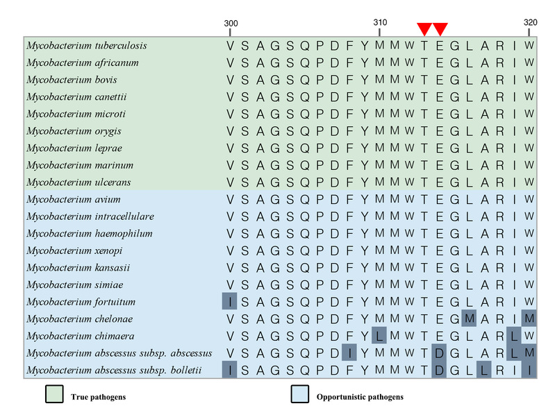 致病性分枝杆菌细胞色素bcc复合物QcrB亚基的氨基酸序列比对