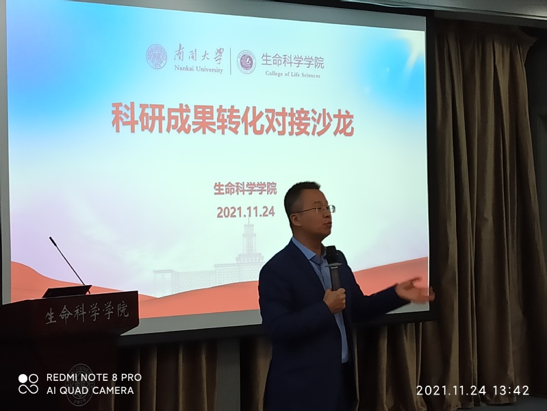 11月24日,公司在生物站报告厅成功举办了首次科研成果转化对接沙龙活动,参会嘉宾包括天津科技金融中心主任、北洋海棠创投基金何勇军总经理,天津瑞久创业投资管理有限公司范钟允经理,仁爱(天津)资本管理有限公司莫镕塵经理,尚势资本程杨经理,天津利安隆新材料股份有限公司郑红朝经理,科研部部长孔德领教授,副经理马挺教授以及公司师生共计50余人。