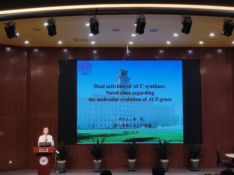 在学术创意分享环节,博士后王晖对环糊精-杯芳烃共组装体用于阿尔茨海默病的治疗进行了介绍,研究发现共组装体表现出很好的解聚淀粉样蛋白-β纤维和阻止神经细胞死亡的能力。博士研究生徐畅也分享了关于ACS双酶活性的相关进展,研究发现高等植物中的乙烯合成关键酶ACS,除了具有传统认知的ACS活性外,还具有C-S裂解酶活性。并且ACS可能来源于C-S裂解酶,打破了其来源于天冬氨酸氨基转移酶的传统观念。