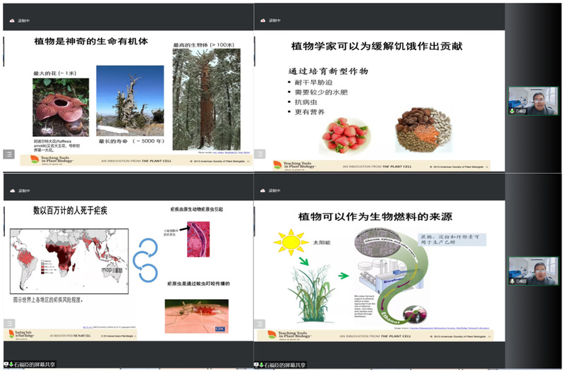 从第一个细胞在植物中被发现,到第一种病毒首次在植物中被分离出来,再到遗传学规律在豌豆实验中首次被揭示,植物学的研究和发展帮助人类更加全面深刻地认识世界。能源危机、全球变暖、粮食安全、疾病肆虐,人类社会的发展面临诸多难题,而植物学的研究和技术开发为人类应对这些挑战提供思路和方法。石福臣教授用生动事例和详实数据向同学们解答了课程的关键问题“为什么研究植物?”。他还对同学们寄予期望,勉励同学们能够以袁隆平、屠呦呦为榜样,成为一名对人类抱有责任感的科学家。