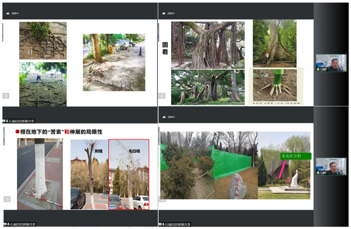 课程的最后,石福臣教授着重介绍了“奇妙植物”的根,展示不同生存环境下植物根以及不同类型的根的不同结构与功能。石福臣教授还讲述了他将东北红豆杉成功种植于南开校园的故事,他提到“植物的根很重要,人类应该重视根的生长规律,爱护植物,尊重植物,理解植物”。“基础不牢,地动山摇,生物学科的学习也应该从最基本的知识学起”,石福臣教授金句频出,同学们受益匪浅。