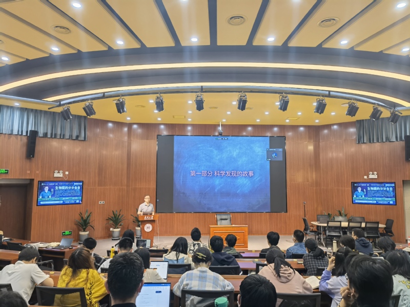 接下来,胡俊杰教授旁征博引,从细胞膜的发现讲起,将生物膜结构模型发展历史上有突出贡献的科学家故事娓娓道来。如C.E.Overton利用大量化合物进行实验,最终得出细胞膜是由一层脂类物质组成的结论;材料学家Langmuir设计膜平衡技术的历程,以及后续科学家发现双层脂分子层模型、蛋白质-脂质-蛋白质“三明治”模型和单位膜模型的故事。胡俊杰教授将专业知识与科学故事融会贯通,启发同学们学习科学家对待科研结论态度严谨、善于归纳总结科研成果的优秀品质,寓教于乐,深入浅出,引人入胜。