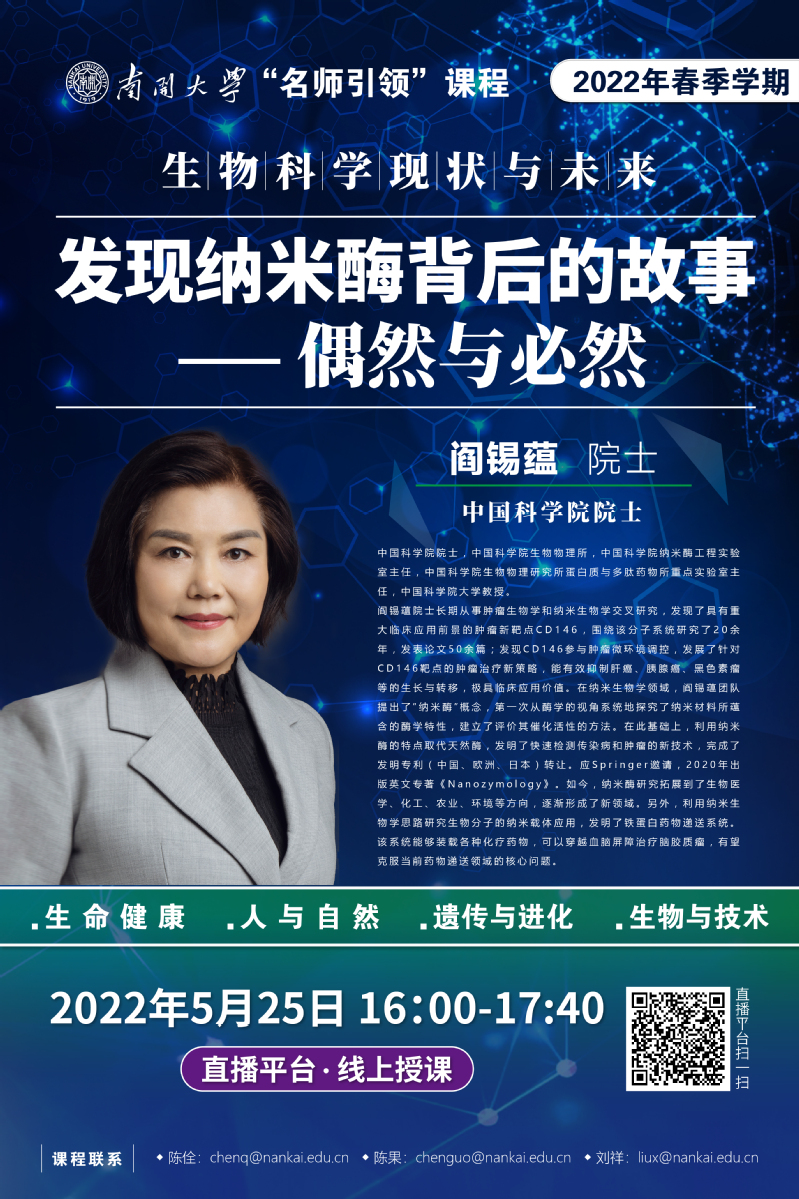 2022年5月25日,中国科公司院士,中国科公司生物物理所、中国科公司纳米酶工程实验室主任,中国科公司生物物理研究所蛋白质与多肽药物所重点实验室主任阎锡蕴教授为我们带来了“名师引领”通识课第十四讲《发现纳米酶背后的故事——偶然与必然》。课程通过腾讯会议与直播平台同步进行,受到了来自k1体育不同公司师生及其他校外人员的热烈欢迎,2500余名师生线上听课。