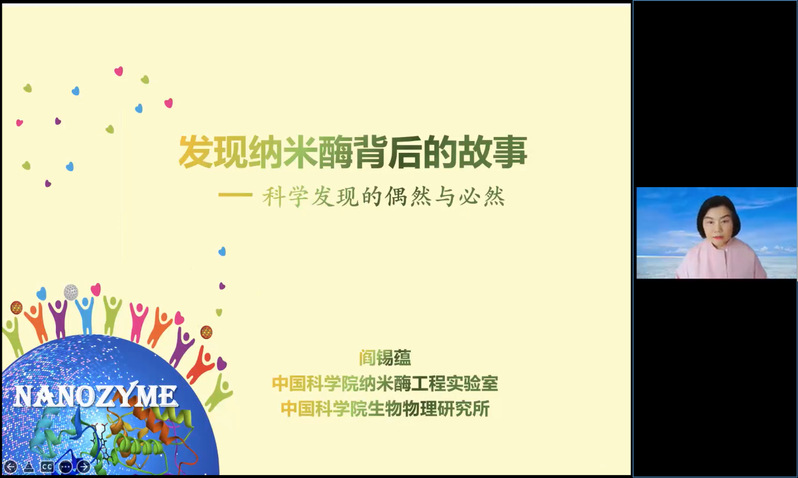 阎锡蕴院士将课程内容分为三个部分:什么是纳米酶?纳米酶是如何被发现的?以及纳米酶是否能够服务于人类健康?讲述由浅入深,循序渐进,精彩纷呈。阎锡蕴院士从酶的定义以及酶学发展的历史进程最终延伸到今天主讲内容“纳米酶”的概念:一类蕴含酶学特性的纳米材料,向同学们介绍纳米酶的基本知识。