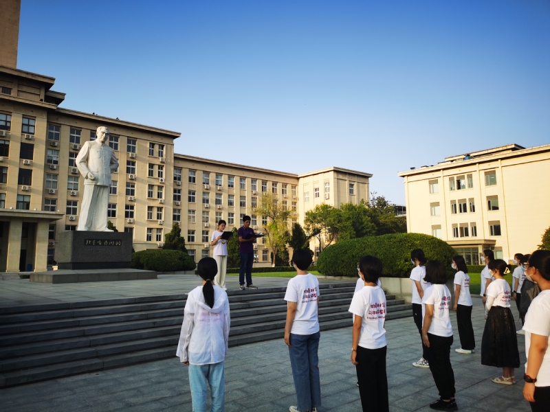 活动过程中,本科生党支部的孙非凡同学、魏天欣同学在总理像前为大家带来“勿忘国耻 吾辈当自强”主题宣讲,激励同学们牢记历史,居安思危,奋发图强,勇担报国重任。最后,大家有序的向总理像献花,表达对总理的崇敬与追思。